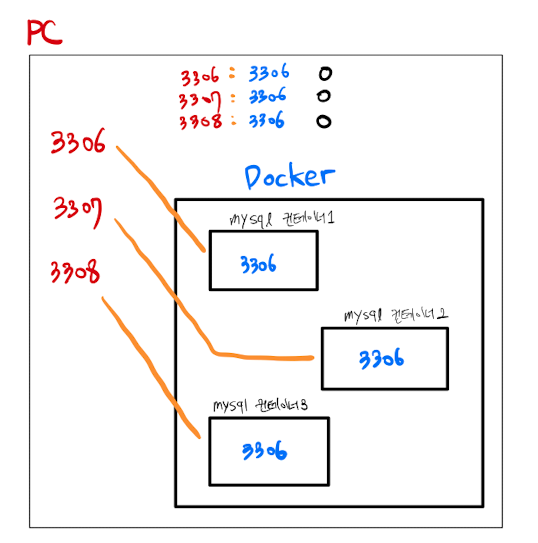 💡 호스트의 포트는 한정적이나, 도커 내부의 포트는 여러 개의 어플리케이션이 각각의 컨테이너로 존재할 때, 컨테이너가 분리되어 있기 때문에 겹쳐도 상관 없다.