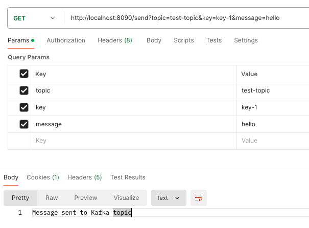 http://localhost:8090/send?topic=test-topic&key=key-1&message=hello